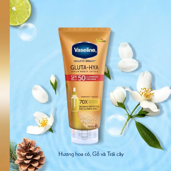 Serum Dưỡng Thể Chống Nắng Vaseline Healthy Bright Gluta-Hya Serum Burst Lotion SPF50 PA+++ (260ml)
