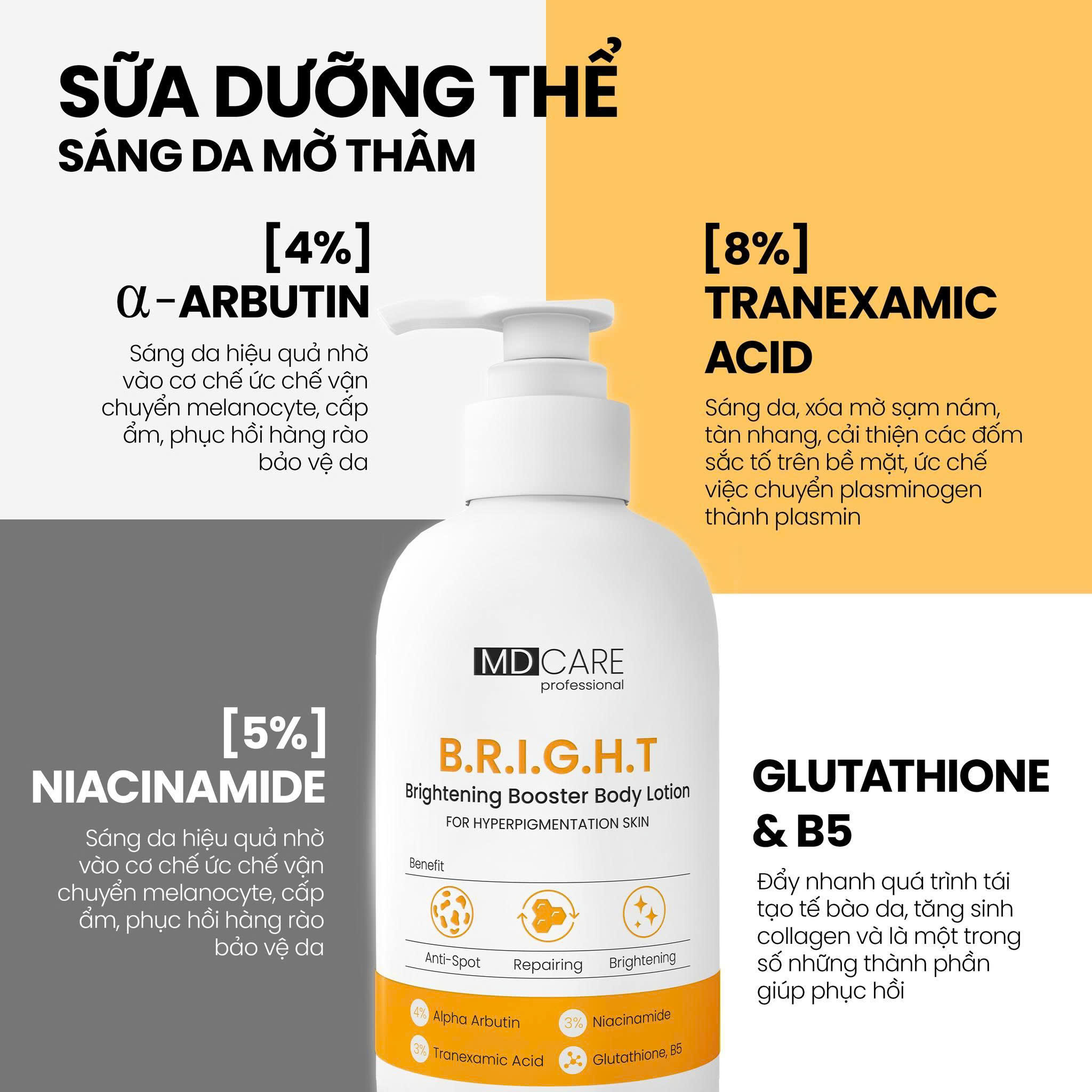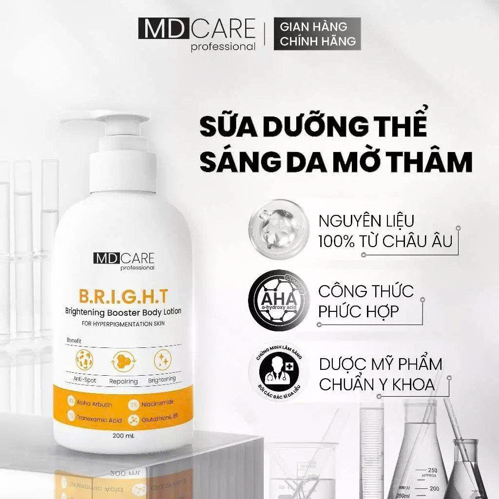 Sữa Dưỡng Thể Giúp Sáng Da Mờ Thâm MD CARE Brightening Booster Body Lotion 200ml