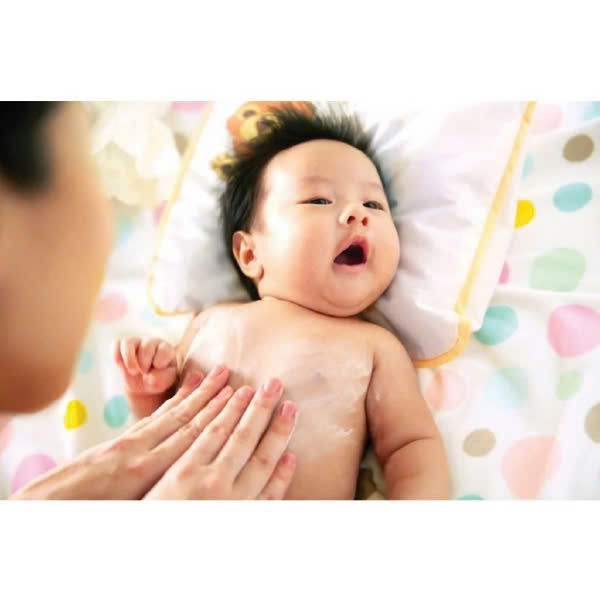 - Dành cho trẻ sơ sinh và trẻ nhỏ: Thoa phấn lên các vùng nếp gấp (cổ, khuỷu tay...), vùng mặc tã (mông, bẹn) và lưng của bé