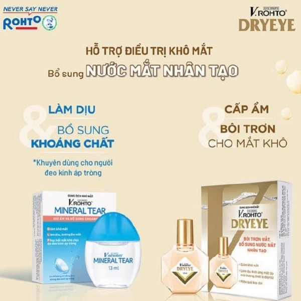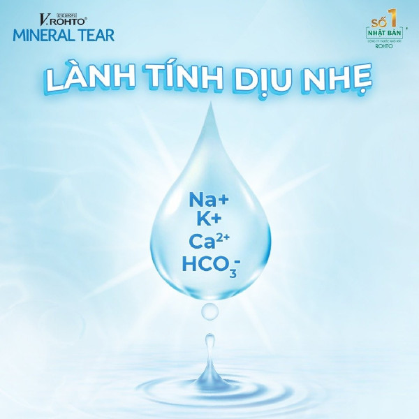 V.Rohto Mineral Tear là dung dịch nhỏ mắt dành cho người bị khô mắt (nhẹ) hoặc người thường xuyên đeo kính áp tròng. Sản phẩm bổ sung khoáng chất và nước mắt nhân tạo, giúp cấp ẩm, làm dịu và bảo vệ mắt suốt cả ngày dài.