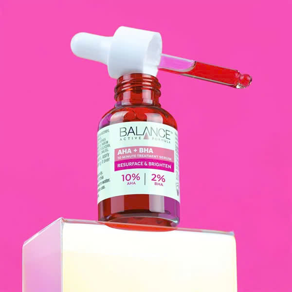 Serum Balance Active Formula AHA + BHA 2% 10 Minute Treatment Serum - Resurface & Brighten Tái Tạo, Sáng Da 30ml là sản phẩm tinh chất dưỡng da đến từ thương hiệu Balance Active Formula - Anh. Sản phẩm với 10% AHA (Glycolic Acid) và 2% BHA (Salicylic Acid) có tác dụng tẩy tế bào chết sâu, làm sáng và cải thiện kết cấu da.
