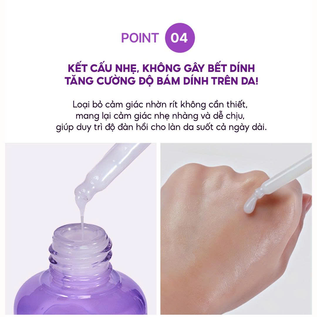 Hyaluronic Acid: Cung cấp độ ẩm sâu, giữ da luôn mềm mại và căng bóng.