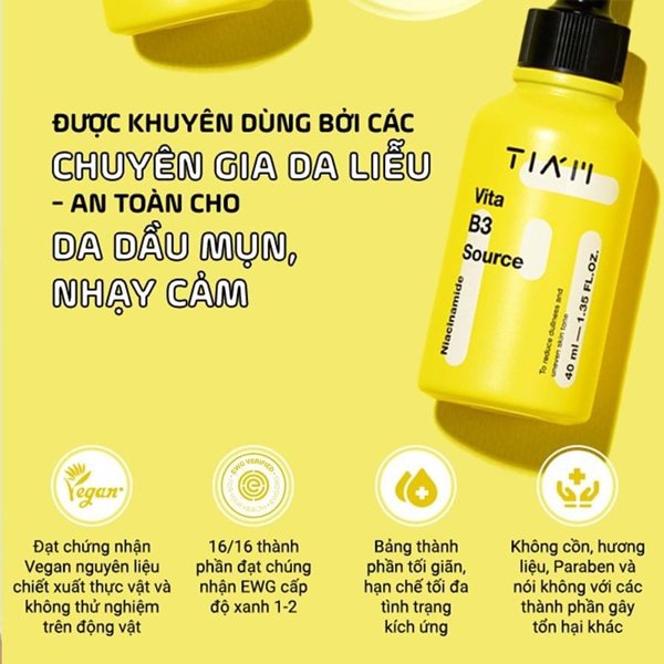 Bạn có làn da dầu mụn, nhạy cảm vừa muốn dưỡng trắng da hiệu quả vừa muốn an toàn thì như thế nào? Đừng lo sản phẩm 𝐓𝐈𝐀'𝐌 𝐕𝐢𝐭𝐚 𝐁𝟑 𝐒𝐨𝐮𝐫𝐜𝐞 𝐒𝐞𝐫𝐮𝐦 sẽ giúp bạn giải quyết vấn đề đó.