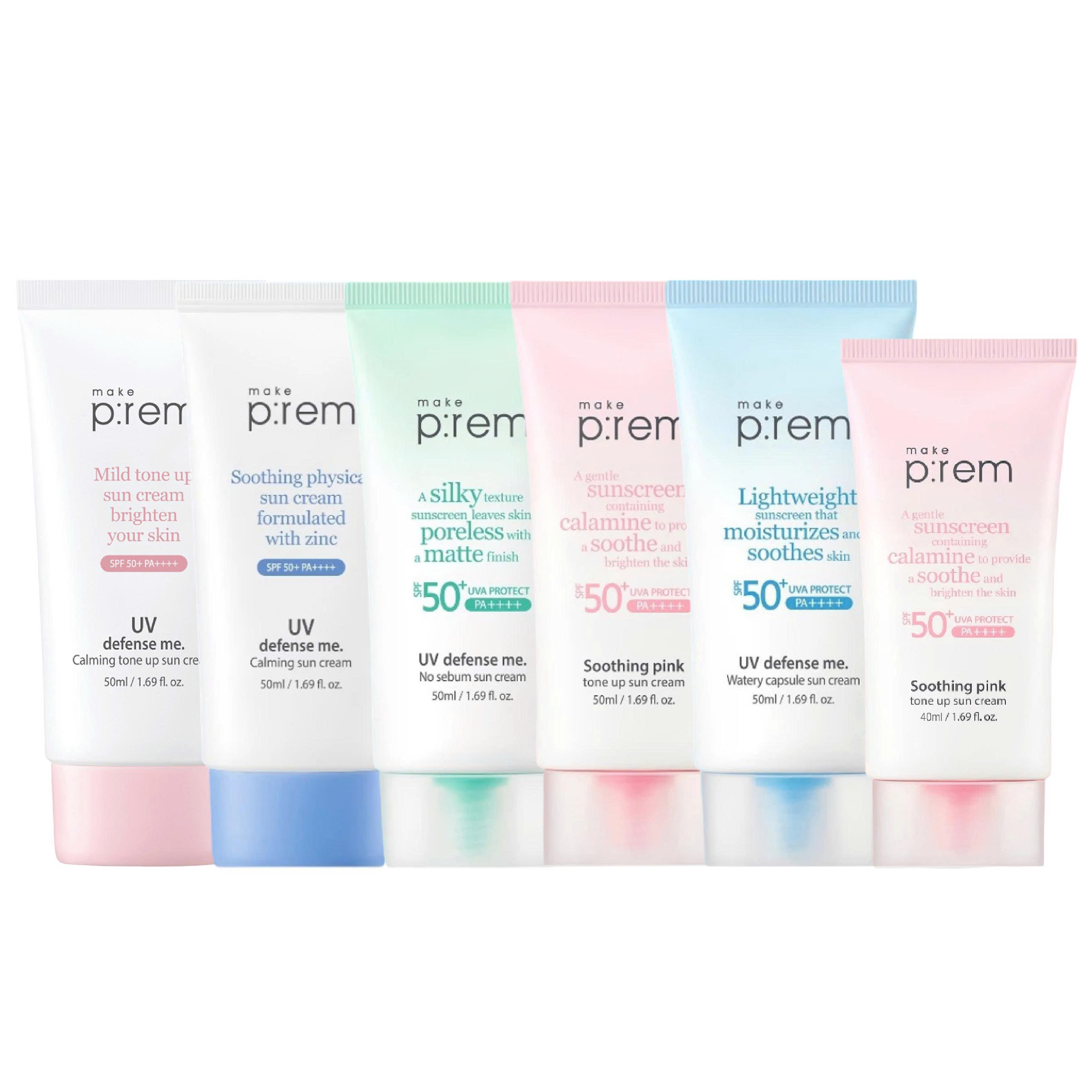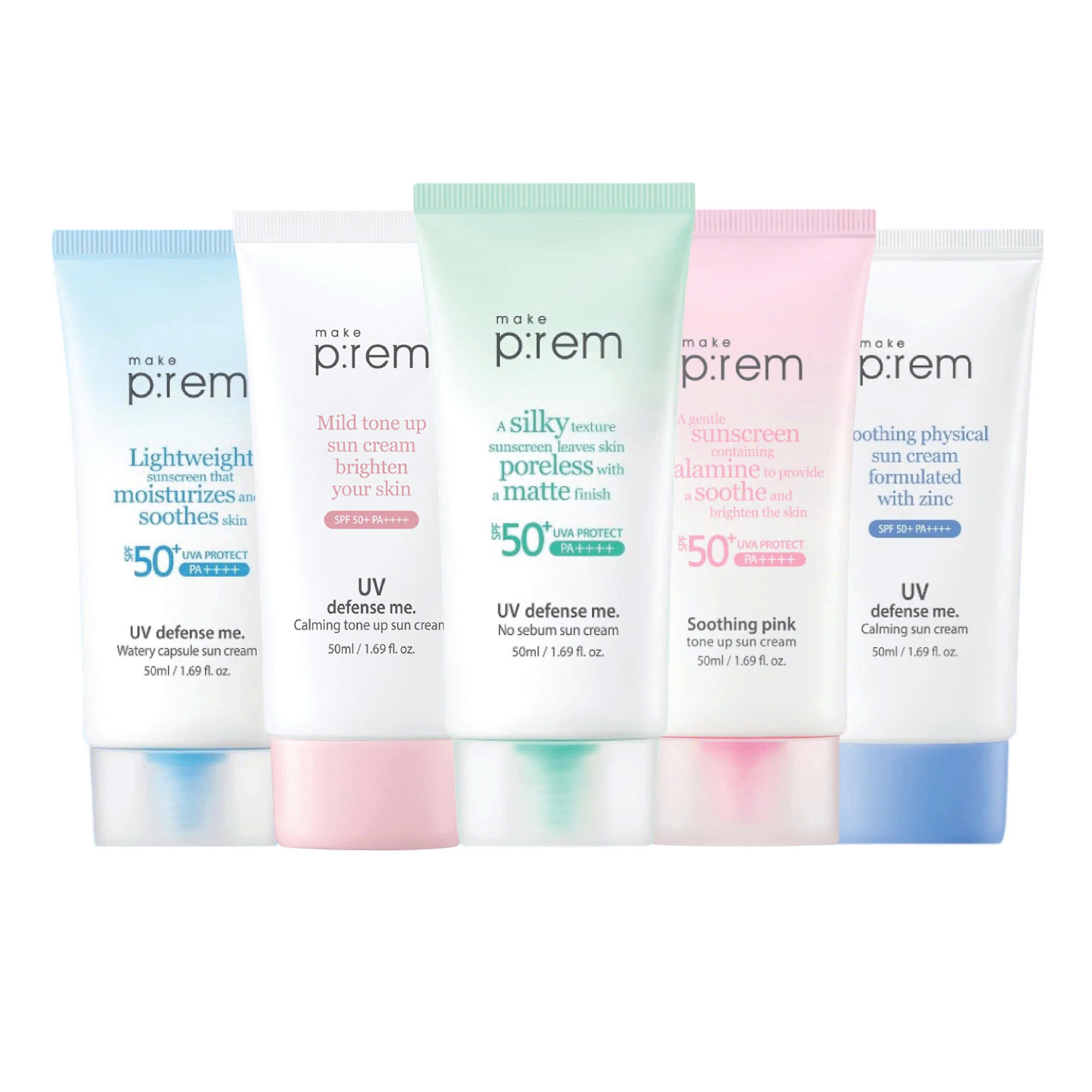 Kem Chống Nắng Nâng Tone, Kiềm Dầu, Dưỡng Ẩm Make P:rem UV Defense Me Sun Cream SPF50+/PA++++ là kem chống nắng thuộc thương hiệu Make P:rem đến từ Hàn Quốc. Với chỉ số chống nắng cao SPF50+/PA++++ giúp bảo vệ da trước ánh nắng mặt trời. Kem chống nắng với nhiều dòng phù hợp cho từng loại da khác nhau, cùng thành phần lành tính giúp chăm sóc làn da mềm mịn.