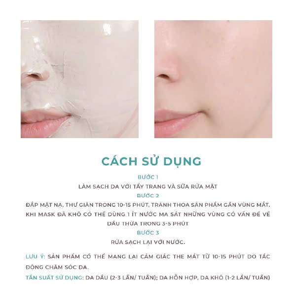 Bước 1: Sau khi làm sạch da, đắp 1 lớp mặt nạ vừa đủ trên da và thư giãn trong 5-10 phút. Không thoa sản phẩm gần vùng mắt