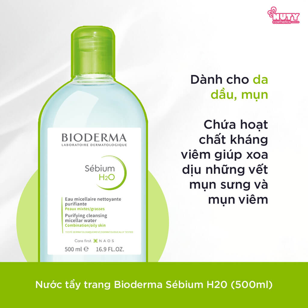Nước Tẩy Trang Dành Cho Da Dầu & Hỗn Hợp Bioderma Sebium H20 Solution Micellaire (500ml)