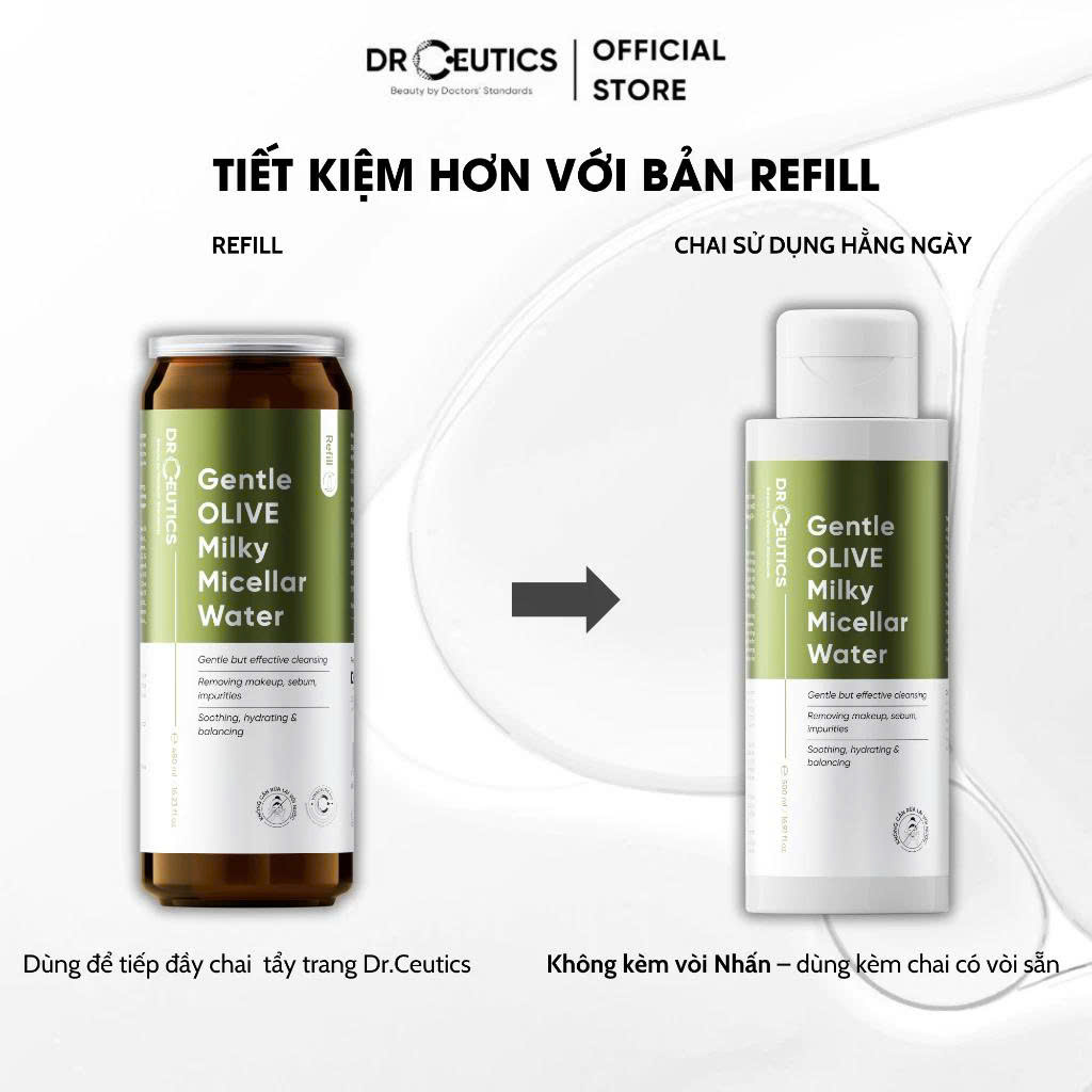 Nước Tẩy Trang Dạng Sữa Drceutics Gentle Olive Milky Micellar Water Refil 480ml