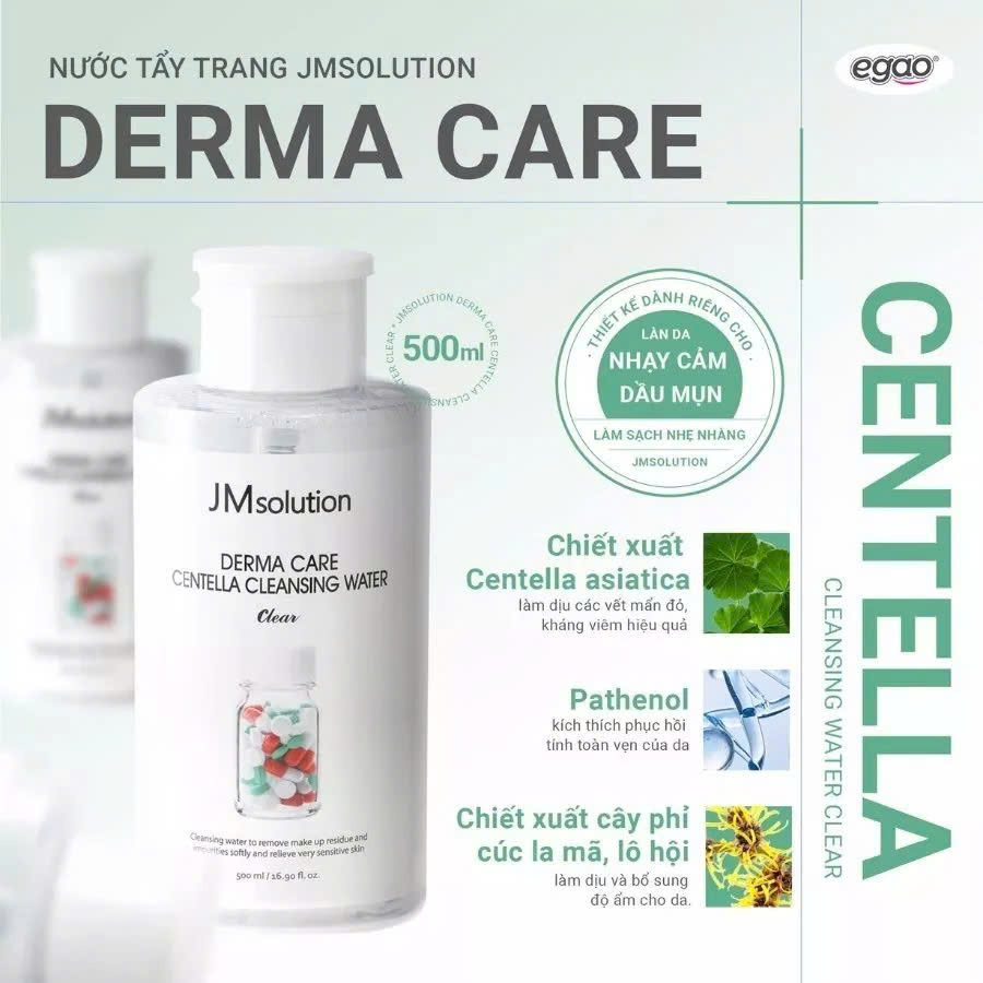 Đối với các nàng sở hữu làn da dầu mụn, tẩy trang là bước quan trọng nhất trong quy trình dưỡng da hàng ngày. Nước tẩy trang chính là lựa chọn tốt nhất để tránh làn da bị kích ứng giúp lấy sạch cặn bẩn, dầu thừa ẩn sâu dưới da. Nước Tẩy Trang JMsolution Rau Má Cho Da Dầu Mụn Derma Care Centella Cleansing Water Clear dành riêng cho làn da dầu mụn với chiết xuất từ cây rau má lành tính, hỗ trợ diệt khuẩn giúp ngăn ngừa mụn và giảm vết đỏ do mụn gây ra. Đây chính là sản phẩm chị em nên trải nghiệm nếu muốn có một làn da sạch mụn, căng mịn, tràn đầy sức sống nha!