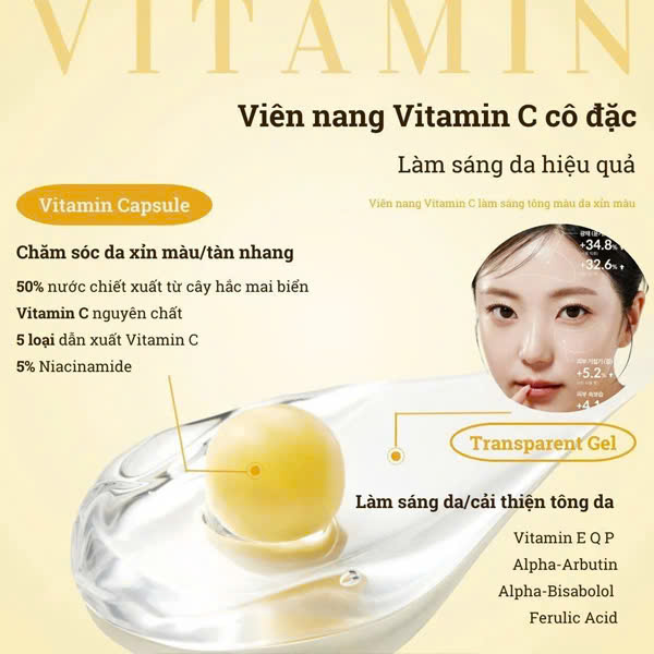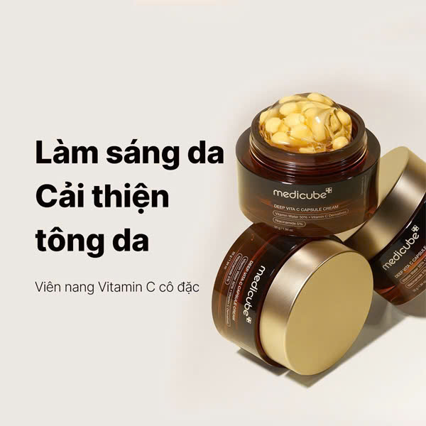 - Kem Dưỡng Viên Nang Sáng Da Mờ Thâm Medicube Deep Vita C Capsule Cream 55g với viên nang Vitamin chứa Chiết xuất 50% Vitamin Tree Water (cây hắc mai biển), 5% Niacinamide và Vitamin C nguyên chất, được đóng thành từng viên để duy trì độ tươi và hiệu lực cao hơn sau mỗi lần sử dụng. Giải quyết tình trạng oxy hóa thường gặp trong chăm sóc da bằng Vitamin.