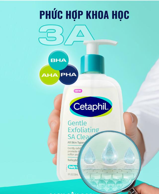 Gel Rửa Mặt Giúp Sạch Sâu,Tẩy Tế Bào Chết Dịu Nhẹ Cetaphil Gentle Exfoliating SA Cleanser 236ml giúp làm sạch sâu, giúp loại bỏ hoàn toàn bụi bẩn và tạp chất trên da một cách dịu nhẹ nhưng vẫn duy trì độ ẩm tự nhiên để bảo vệ da khỏi tình trạng khô ráp. Công thức lành tính giúp không gây kích ứng sẽ an toàn cho mọi loại da, kể cả da nhạy cảm.