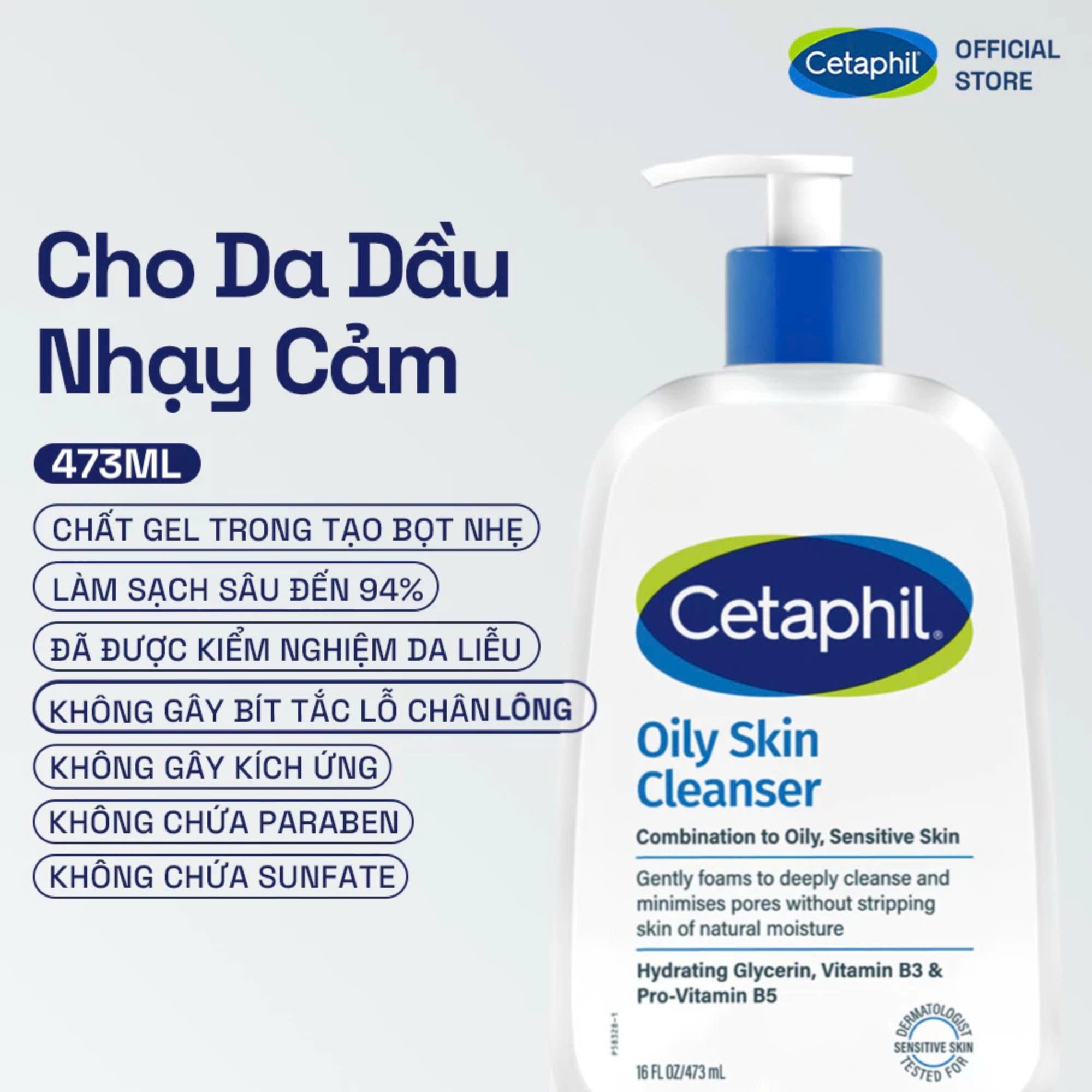 Sữa Rửa Mặt Dành Cho Da Dầu Nhạy Cảm Cetaphil Oily Skin Cleanser 473ml