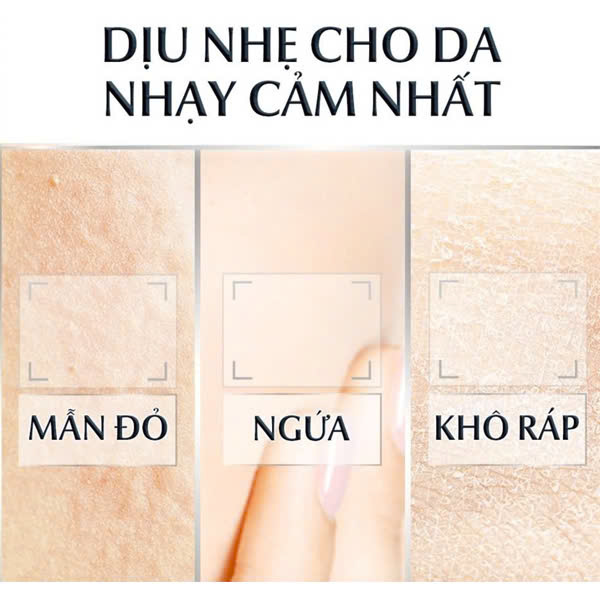 - Sản phẩm được chứng minh: KHÔNG GÂY KÍCH ỨNG CHO LÀN DA NHẠY CẢM NHẤT, bao gồm da đỏ, ngứa và khô ráp.