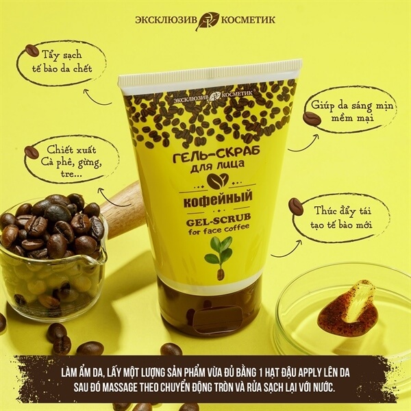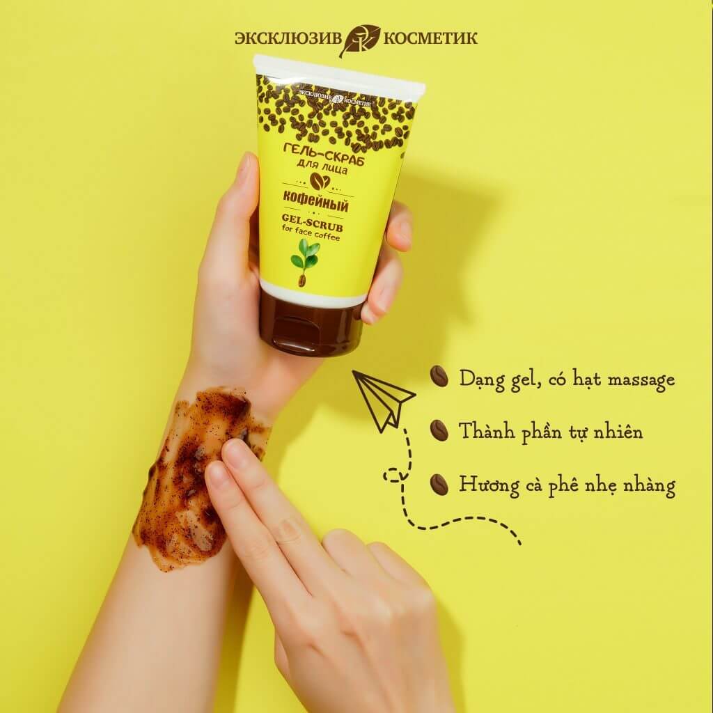 Tẩy Da Chết Mặt Exclusive Cosmetic Từ Cà Phê 100g là tẩy tế bào chết cho mặt đến từ thương hiệu mỹ phẩm Exclusive Cosmetic của Cộng Hòa Belarus, với chiết xuất từ thiên nhiên như hạt cà phê, gừng, tre,...kết hợp cùng với kết cấu dạng gel có hạt massage nhẹ nhàng loại bỏ các lớp sừng, da chết, cải thiện làn da thâm sạm, xỉn màu giúp da trông căng mướt, mịn màng và rạng ngời.