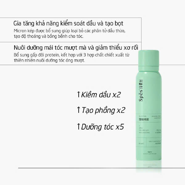 Dầu Gội Khô SPES Washing-Free Hairspray là sản phẩm hàng đầu của thương hiệu, đáp ứng nhu cầu làm sạch tóc nhanh chóng và tiện lợi của người tiêu dùng hiện đại. Với các thành phần tự nhiên và công dụng vượt trội, sản phẩm xịt gội đầu khô này không chỉ giúp bạn làm sạch tóc nhanh chóng mà còn mang lại cho bạn cảm giác cực kỳ tươi mới và tự tin suốt ngày dài.