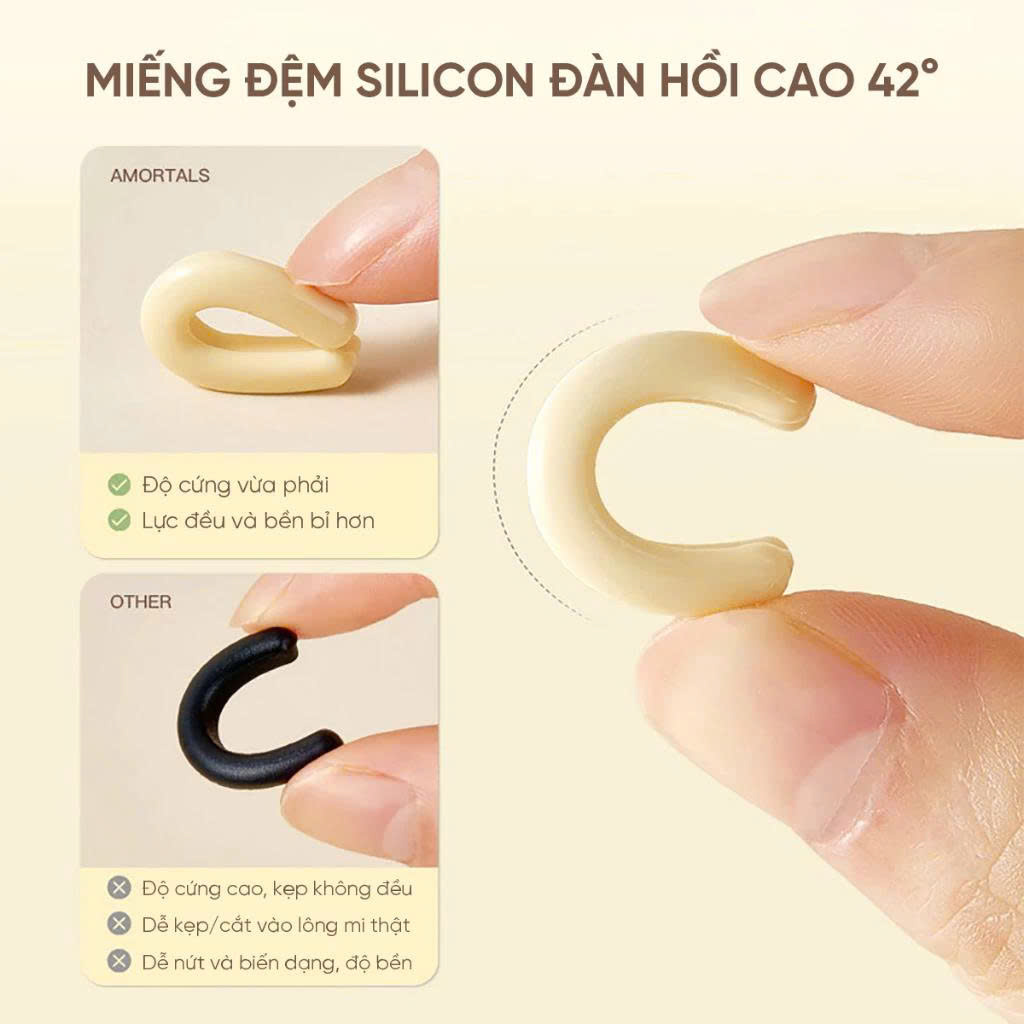 Miếng đệm silicon mềm và đàn hồi tốt đóng vai trò như lớp đệm bảo vệ giữa kẹp và lông mi, giúp giảm áp lực trực tiếp lên sợi mi. Nhờ đó, hạn chế tình trạng gãy, rụng hoặc làm tổn thương mi thật, kể cả khi sử dụng thường xuyên
