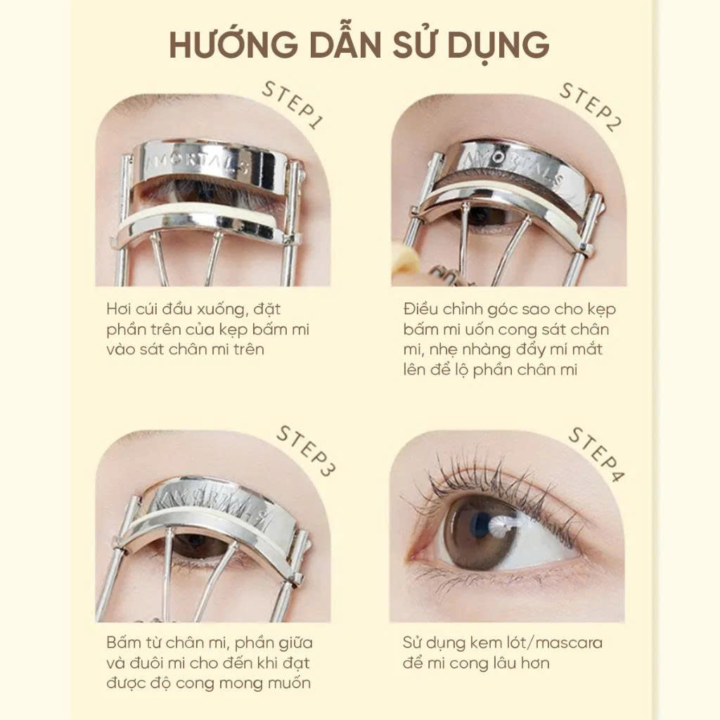 Kẹp Bấm Mi Amortals Curling Eyelash Curler với hàng mi cong vút, đôi mắt sẽ trở nên to tròn, có chiều sâu hơn, ngay cả khi không sử dụng mi giả. Sản phẩm giúp tôn lên vẻ đẹp tự nhiên hoặc dễ dàng kết hợp với kiểu trang điểm sắc nét, ấn tượng cho các dịp đặc biệt.