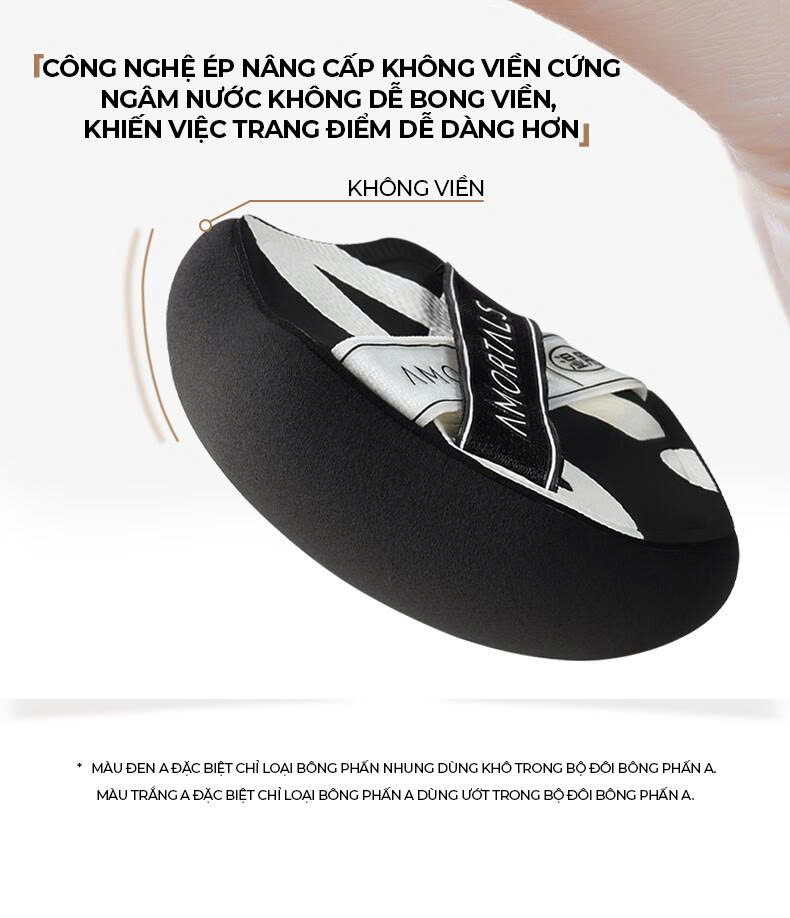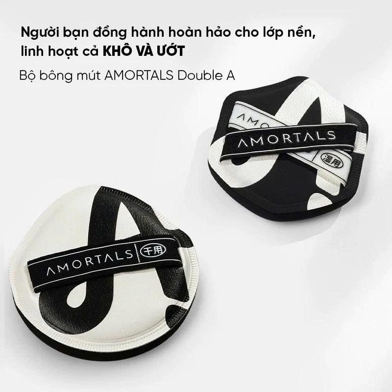 Bộ đôi bông phấn trang điểm AMORTALS với 2 thiết kế độc đáo, giúp bạn có lớp nền hoàn hảo mọi lúc mọi nơi: