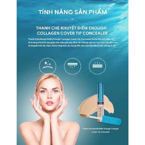 Thanh Che Khuyết Điểm Enough Collagen Cover Tip Concealer là che khuyết điểm với khả năng che phủ cao giúp che hiệu quả các đốm tàn nhang, sẹo do mụn hay các đầu mụn bị ửng đỏ trên da, hiệu chỉnh tông màu da mang đến cho bạn lớp nền chuẩn không tì vết thuộc thương hiệu Enough đến từ Hàn Quốc.