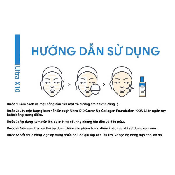 Bước 2: Lấy một lượng kem nền Enough Ultra X10 Cover Up Collagen Foundation 100ML lên ngón tay hoặc bông trang điểm.