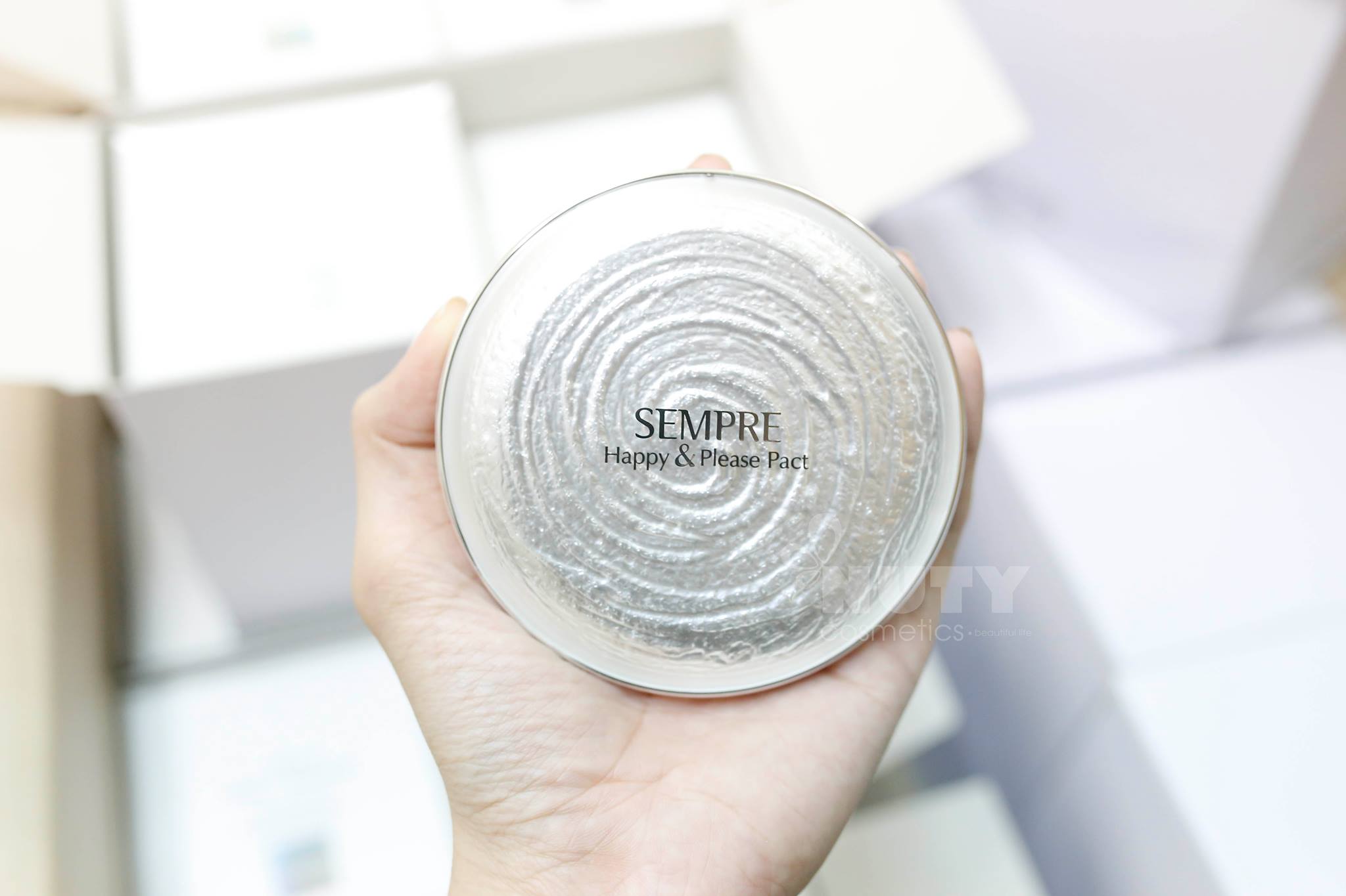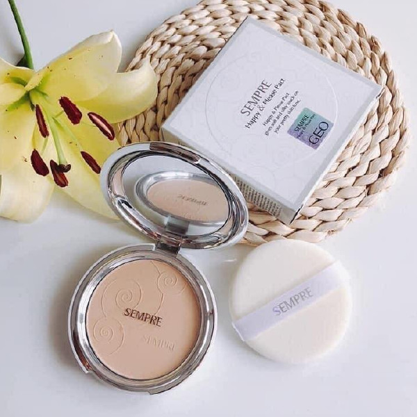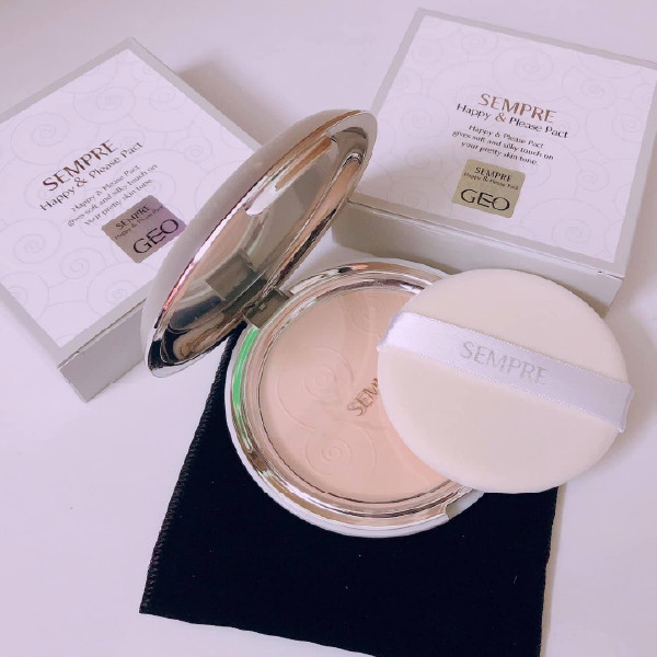 Phấn Phủ Dạng Nén Geo Lamy Sempre Happy & Please Pact: Phù hợp với da dầu nhờ công thức kiềm dầu cực tốt, có chỉ số chống nắng SPF 20